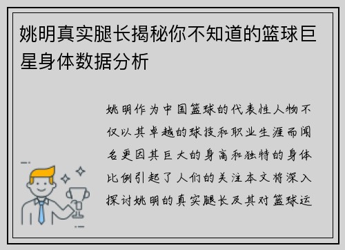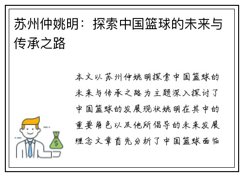 姚明,这位中国篮球的传奇人物,在其职业生涯的竹竿期,不仅为个人的辉煌岁月奠定了基础,更为整个中国篮球的发展和崛起注入了强大的动力。本文将从姚明的成长历程、在NBA的影响力、中国篮球的发展以及姚明对青少年篮球运动的推动四个方面详细阐述这一主题。通过回顾姚明与中国篮球共同走过的辉煌岁月,我们将更加清晰地看到这条崛起之路所背后的艰辛与荣耀,也能深刻理解姚明作为桥梁,如何连接了中西方篮球文化,为中国篮球未...